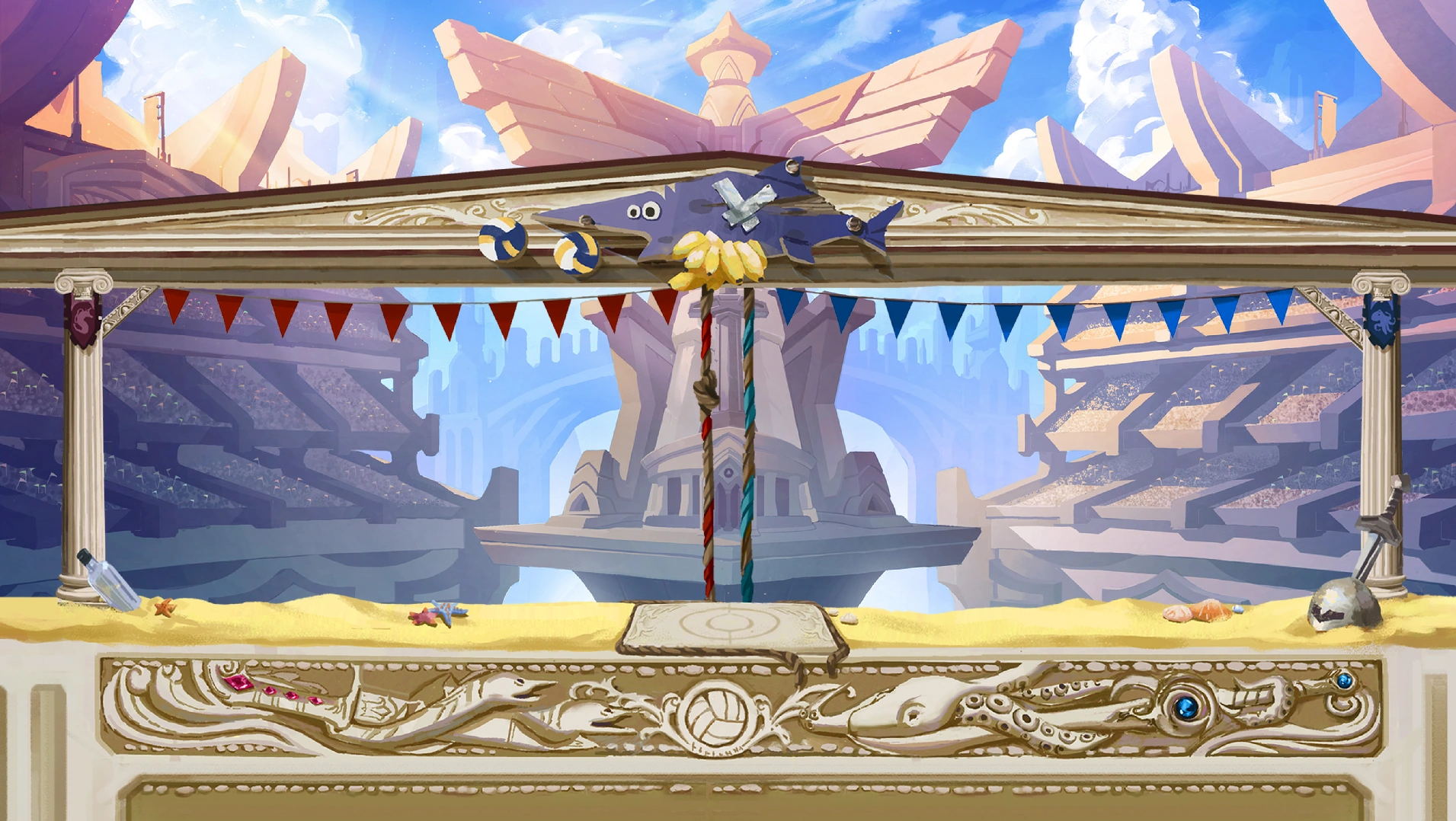 Thundergard Sands (previously known as Thundergard Sands Stadium) is one of the Maps available in Brawlhalla, exclusive to the Volleybrawl gamemode.